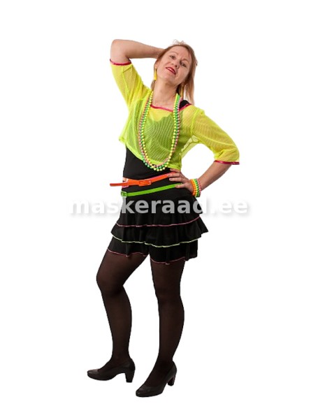 Naiste 80ndate kostüüm neoonkollases võrksärgis