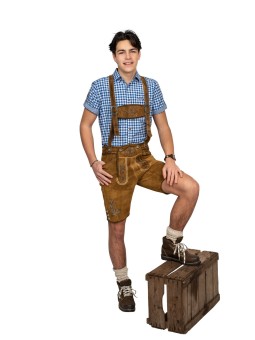 Baieri mees lühemate nahkpükste ja valge orig. pluusiga