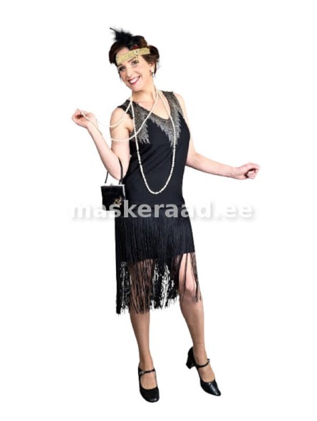 Kahekümnendate kolmekümnendate kleit pikkade narmastega seelikul, suurus 38-40, suhtelisel kitsale puusale.
