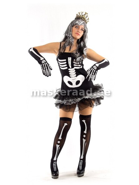 Juurde võib laenutada luukerekindaid, parukat, halloweeni ehteid. Osta saab luukeresukki, sukkpükse, zombiläätsi