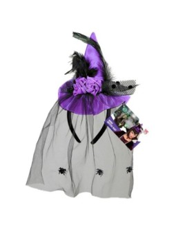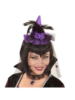 Lilla mini nõiamüts rooside, sulgede ja ämbliku tülliga