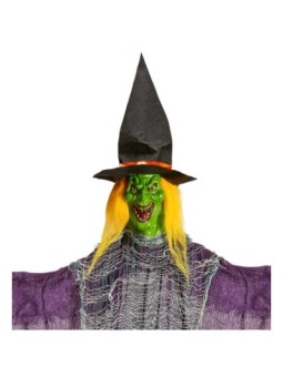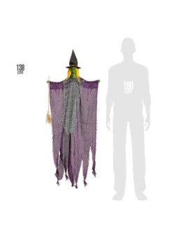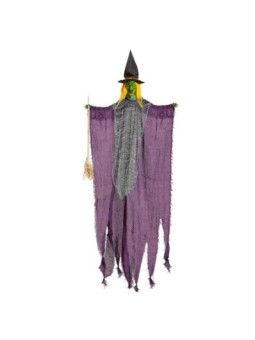 Nõid lillas keebis, riputatav, luuaga, 138 cm