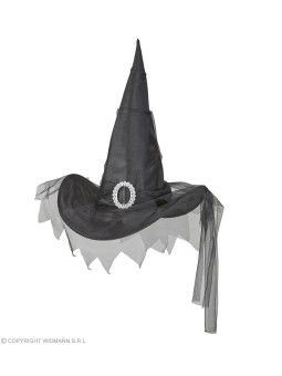 Stiilne ja peen must nõiamüts tülliga, mis on suurepärane lisand Halloweeni kostüümidele, temaatilistele pidudele või muudele erilistele sündmustele, kus soovid luua maagilist ja salapärast atmosfääri.